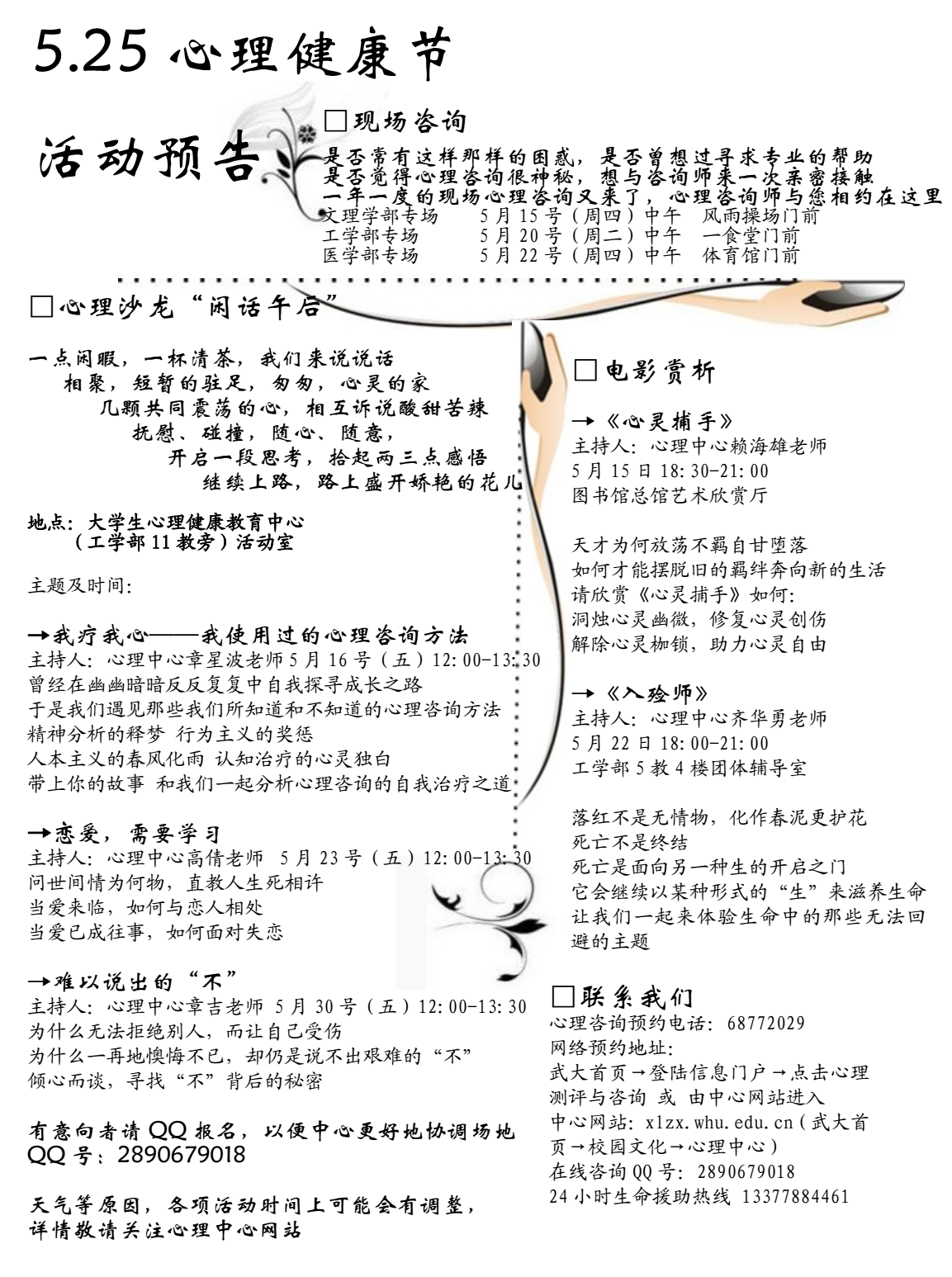 5·25,我爱我,今年的心理健康节即将拉开帷幕,让我们来看看都有哪些活动吧!