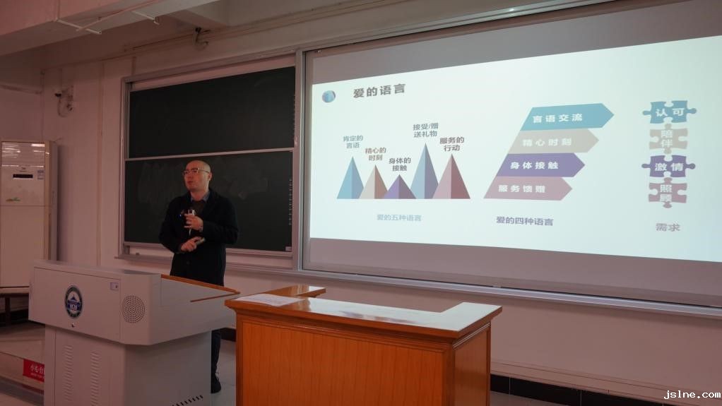 2023年11月11日晚上18:30,来自华中师范大学心理健康教育中心的余海军老师,受新利体育在线官网首页登录大学心理健康教育中心邀请,在新利体育在线官网首页登录信息学部1教301为同学们带来了一场趣味盎然的爱情心理学讲座。讲座由新利体育在线官网首页登录大学生心理卫生协会(以下简称“心协”)承办,到场同学近300人。