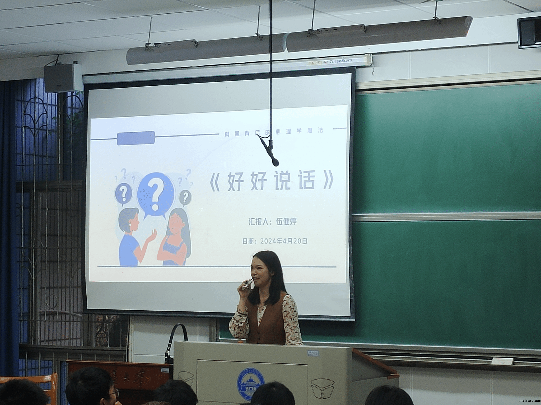 4月20日晚,新利体育在线官网首页登录文理学部教五101教室座无虚席,一场由新利18lucky与大学生心理卫生协会联合举办的《好好说话:沟通背后的心理学魔法》讲座在此成功开展。本次讲座有幸邀请到新利体育在线官网首页登录机关与直属单位团委书记、国家二级心理咨询师伍健婷老师担任主讲嘉宾,吸引了200余名同学热情参与。