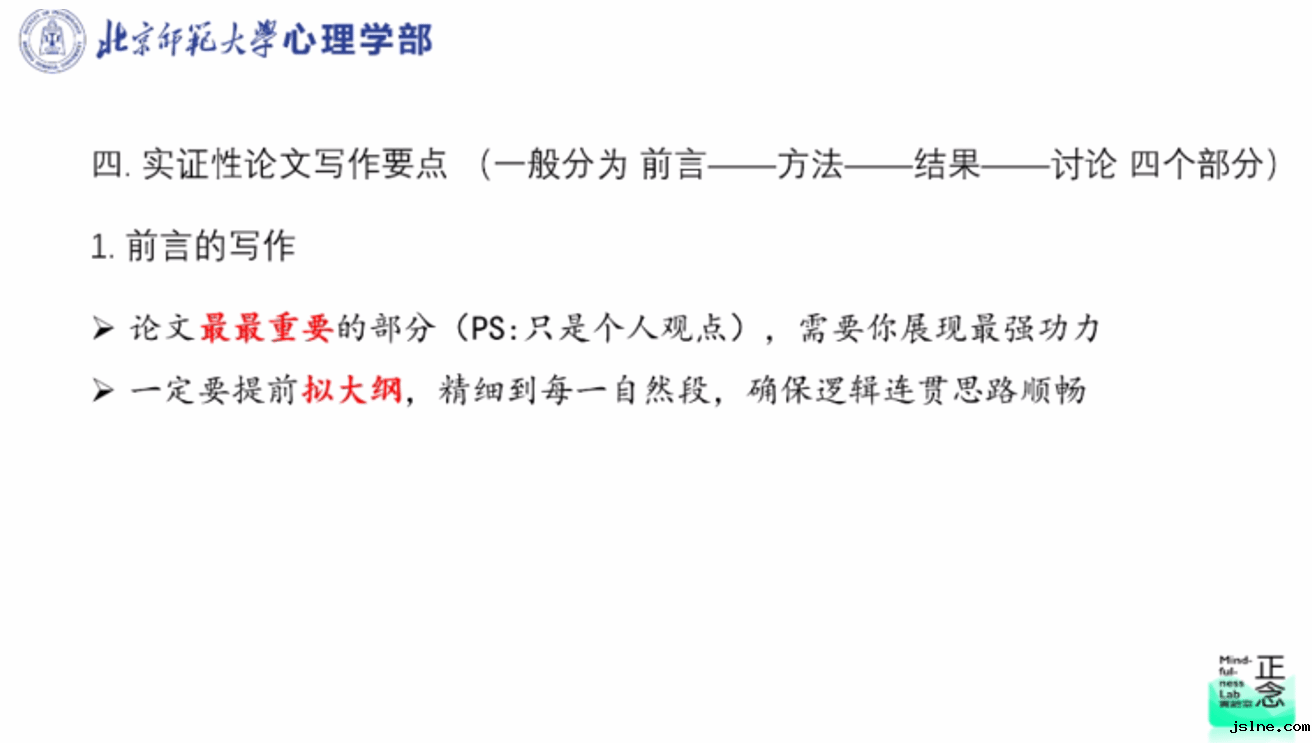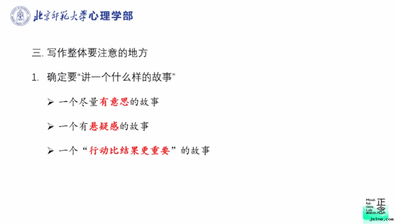 (1)确定一个尽量有意思、有悬疑的故事。(2)注重研究的行动大于结果。(3)注意论文语言的严谨性、逻辑的连贯性以及格式的规范。